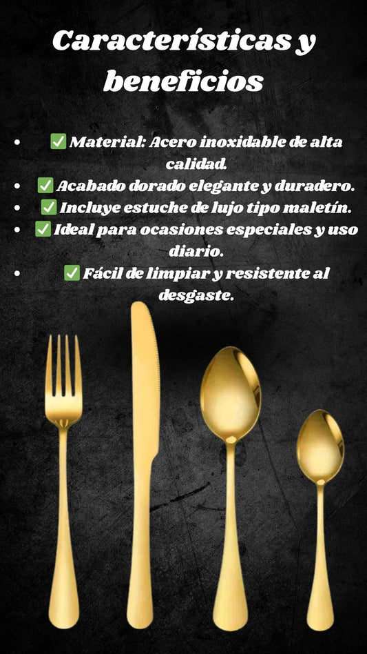 ✨ “Elegancia en tu mesa: Set de Cubiertos Dorados de Lujo”